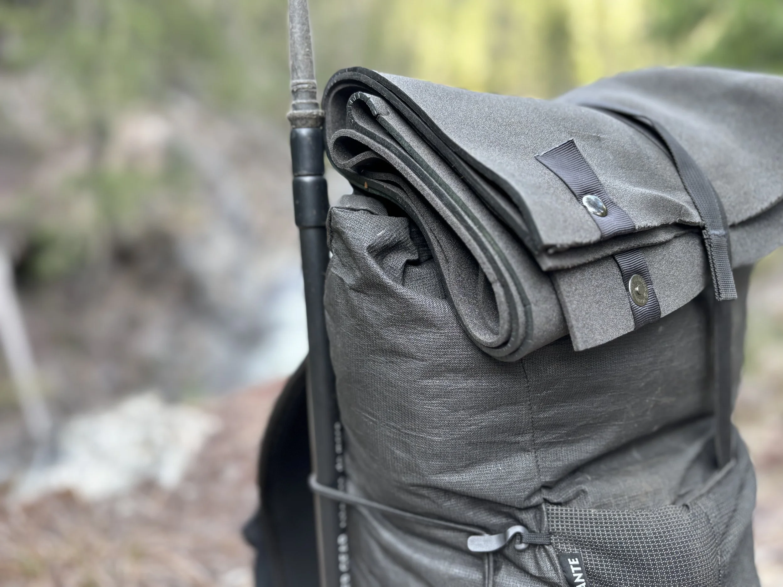MaryPoppinsUL sleep pad upper is the perfect size for an internal pack frame while on the trail. It provides rigidity and comfort while still allowing room for a bear can in the main compartment of your frameless pack. The lower, a convenient stretch pad, can be stowed on the outer-pack, or wherever you want it.